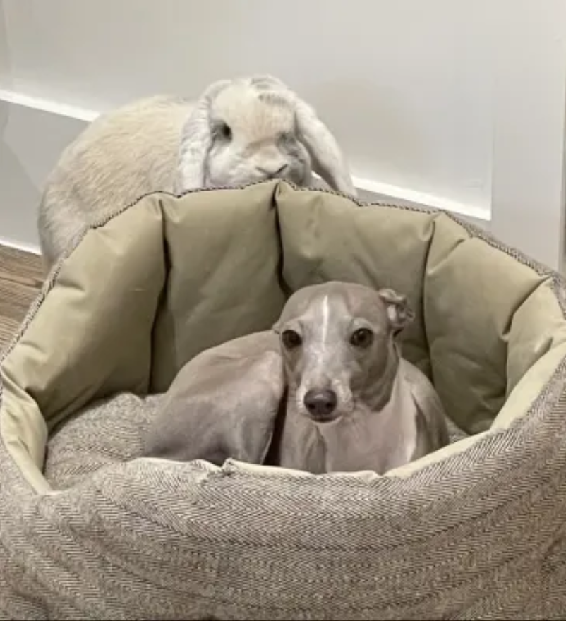 The priority is caring and loving our fur family whilst taking care and respecting our beautiful home. Chase our dog loves walks (on lead) loves cuddles and attention. He is a contact dog, meaning he loves nothing more than having human contact. He is super friendly and incredibly loving. We have a big secure garden that Chase enjoys running around in and nearby woods for adventures as well as the beach to enjoy strolling along. He will happily accompany you to lunch or dinner and will be thrilled to taste the food too if he is lucky enough. Chase must never be let off the lead on walks as his sighthound nature may override his recall. So to keep him safe he’s to be kept on the lead. Chase is very good on the lead a delight to walk. Chase receives so much attention when he is out and about so don’t expect to get anywhere fast. Rocket and Petal are house lop eared bunnies who have their own part of the house. They also like attention, morning treats, head rubs and cuddles too. When handling them they are never to be picked up by their ears but instead handled with love. Our Bunnies and Chase get along beautifully. Chase loves stealing the bunnies food and they even eat together from the same bowl at times (now that’s love). They are all great friends ❤️ As for the house there are some house rules but that aside I know whoever gets the opportunity to come and stay will have a wonderful time here in our comfortable home with our amazing animals.